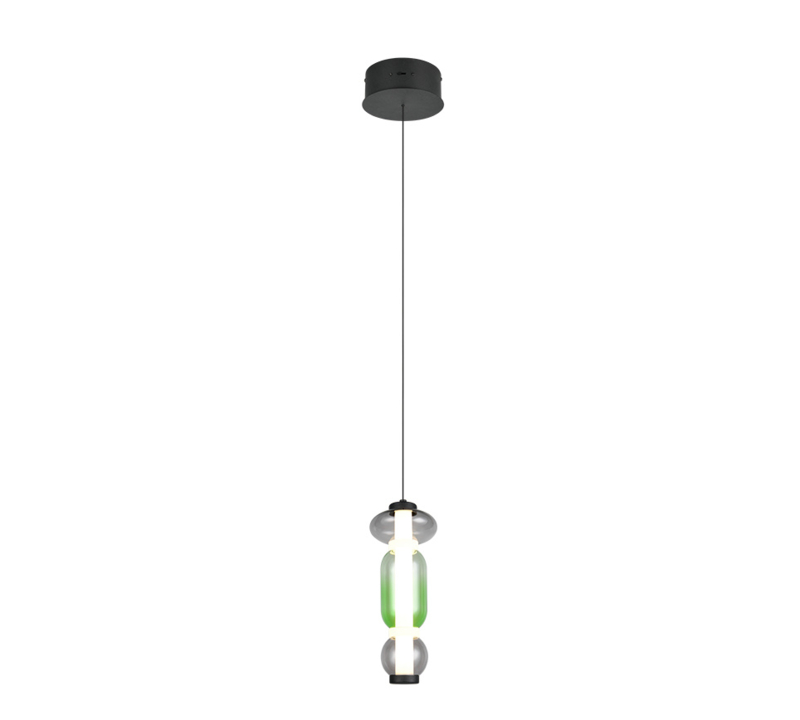 De lamp is uitgevoerd met een ledbron van 6w komt overeen met 800 lumen en lichtkleur instelbaar van 2300-3000-4000 kelvin. De Minerva is in de kleur zwart en afgewerkt met multicolor glas. Het glas heeft een doorsnee van 15,8cm en de hoogte is 200 cm. Deze lamp is verstelbaar in hoogte en dimbaar door de switchdimmer.