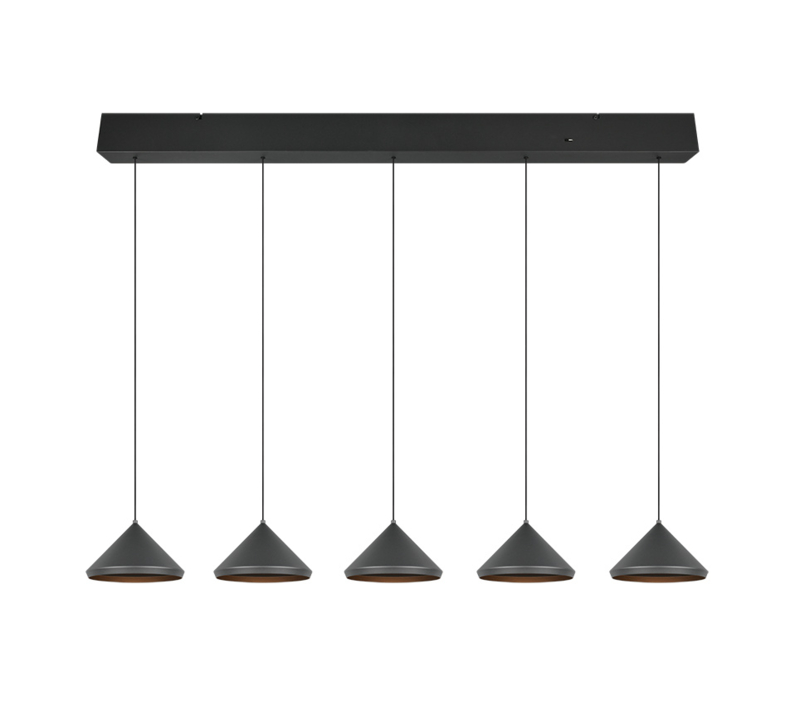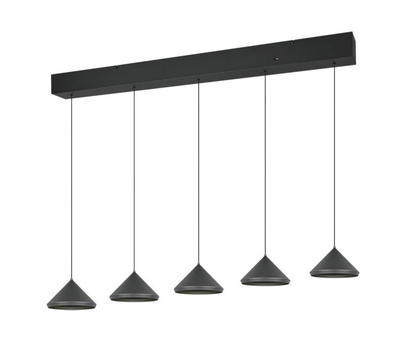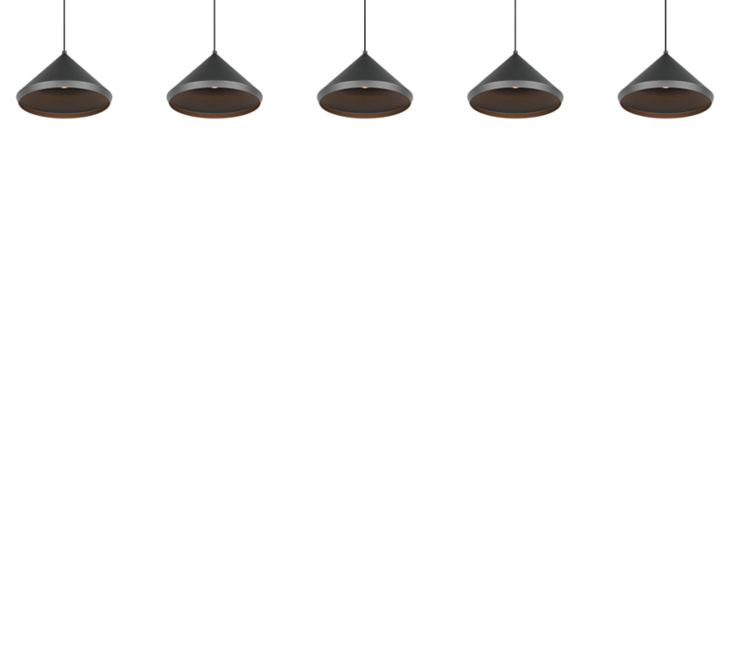 De strakke look geeft de Laguna 5-lichts van het merk Trio lighting een uniek ontwerp en onmiskenbare karakter. De 5 metalen kelken maken absoluut verblindingsvrije lichtverdeling mogelijk. De vijf hangers kunnen individueel in hoogte worden versteld. Een mooi model voor boven een eettafel.