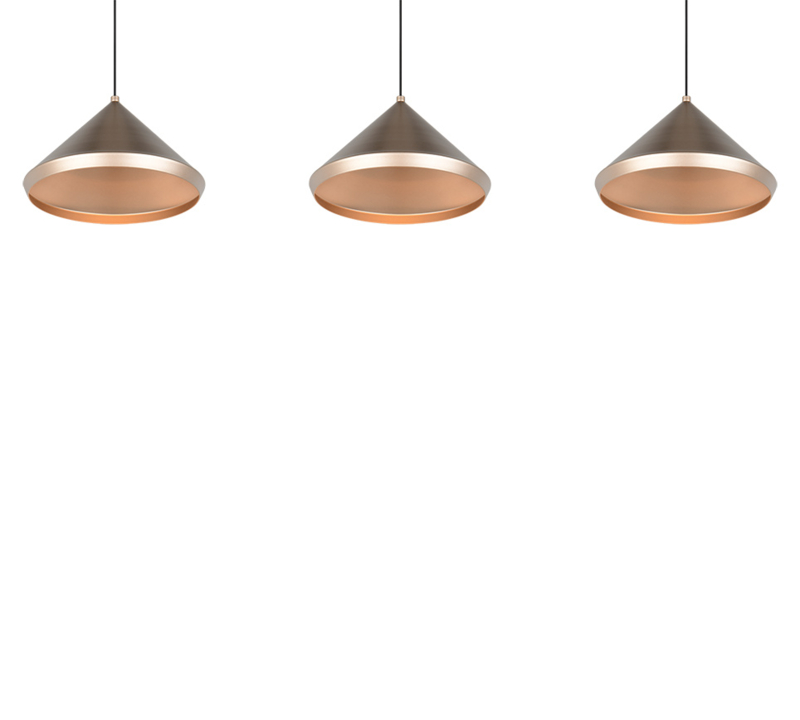 De strakke look geeft de Laguna 3-lichts van het merk Trio lighting een uniek ontwerp en onmiskenbare karakter. De 3 metalen kelken maken absoluut verblindingsvrije lichtverdeling mogelijk. De drie hangers kunnen individueel in hoogte worden versteld. Een mooi model voor boven een eettafel.