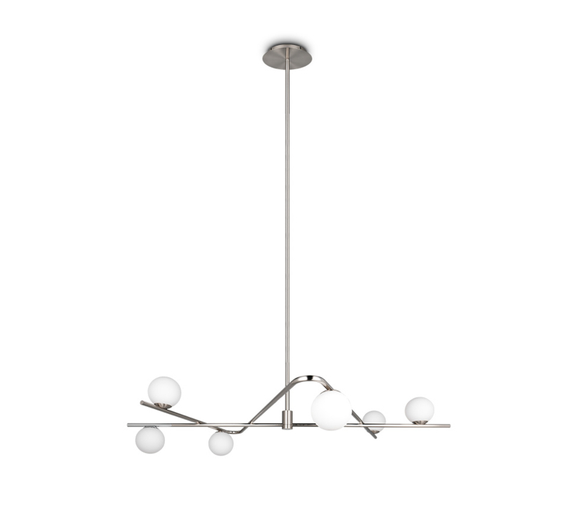 Trio lighting hanglamp Flaming, 6-lichts nikkel-wit glas