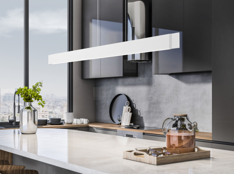 - Lengte van het armatuur: 130 cm, ideaal voor langere eettafels of voor het creëren van een statement in de ruimte.